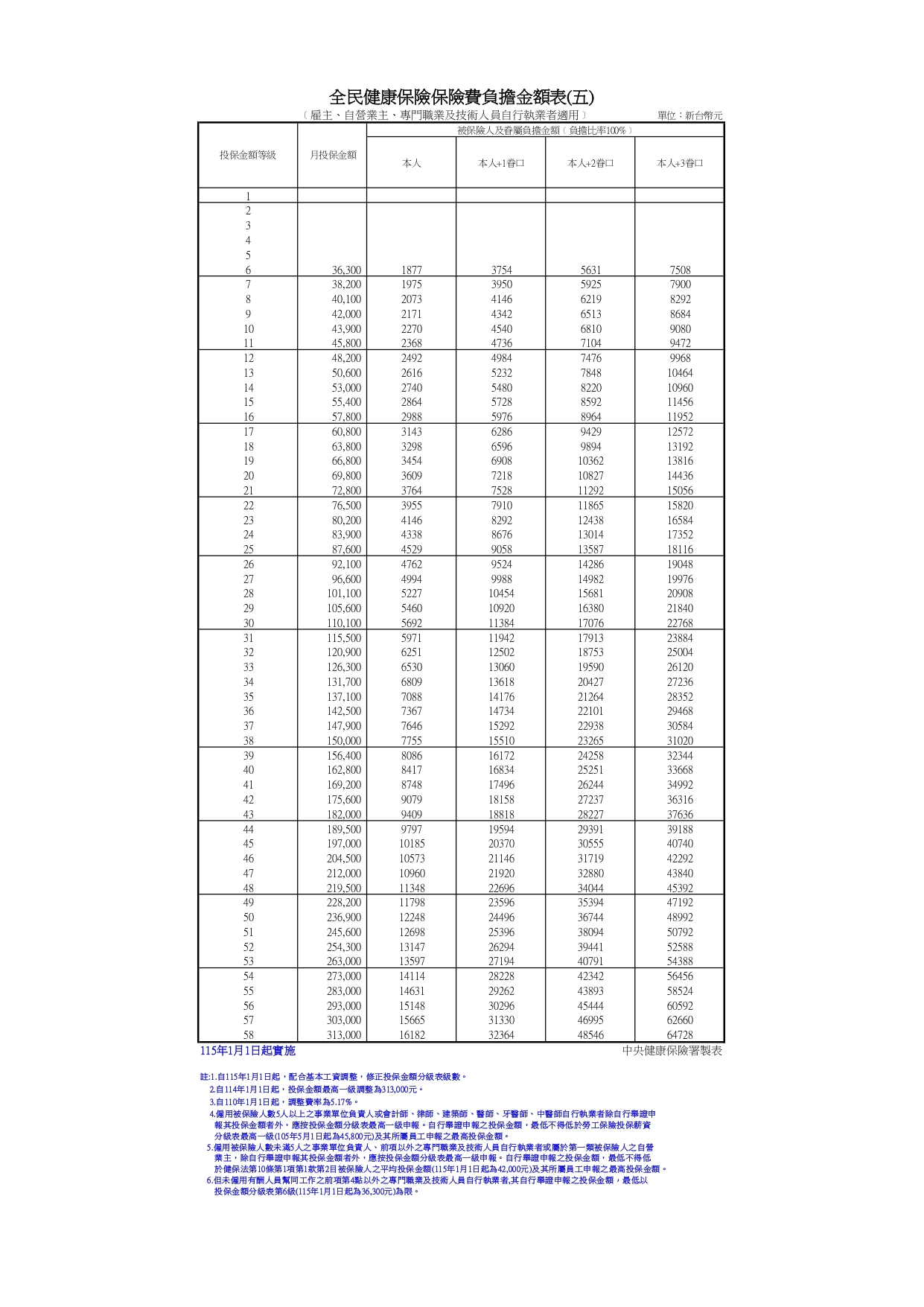 雇主、自營業主、專門職業及技術人員自行執業者(115.1.1生效)